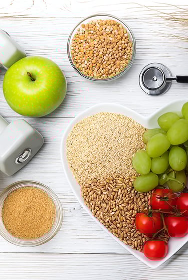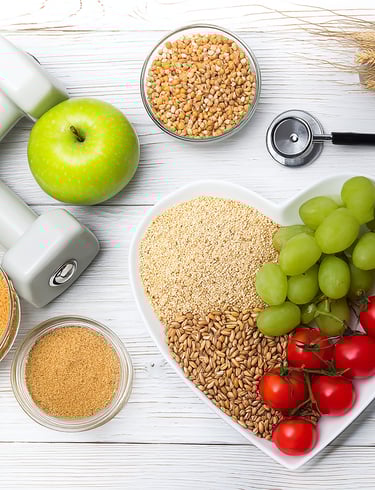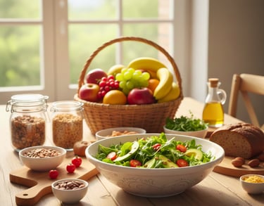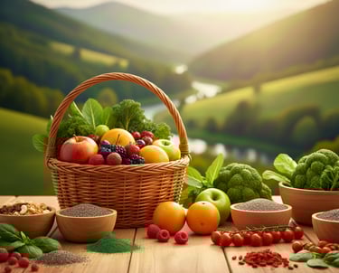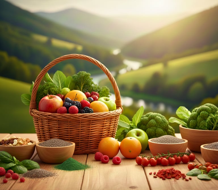 Selección de alimentos saludables para una dieta equilibrada y vital.